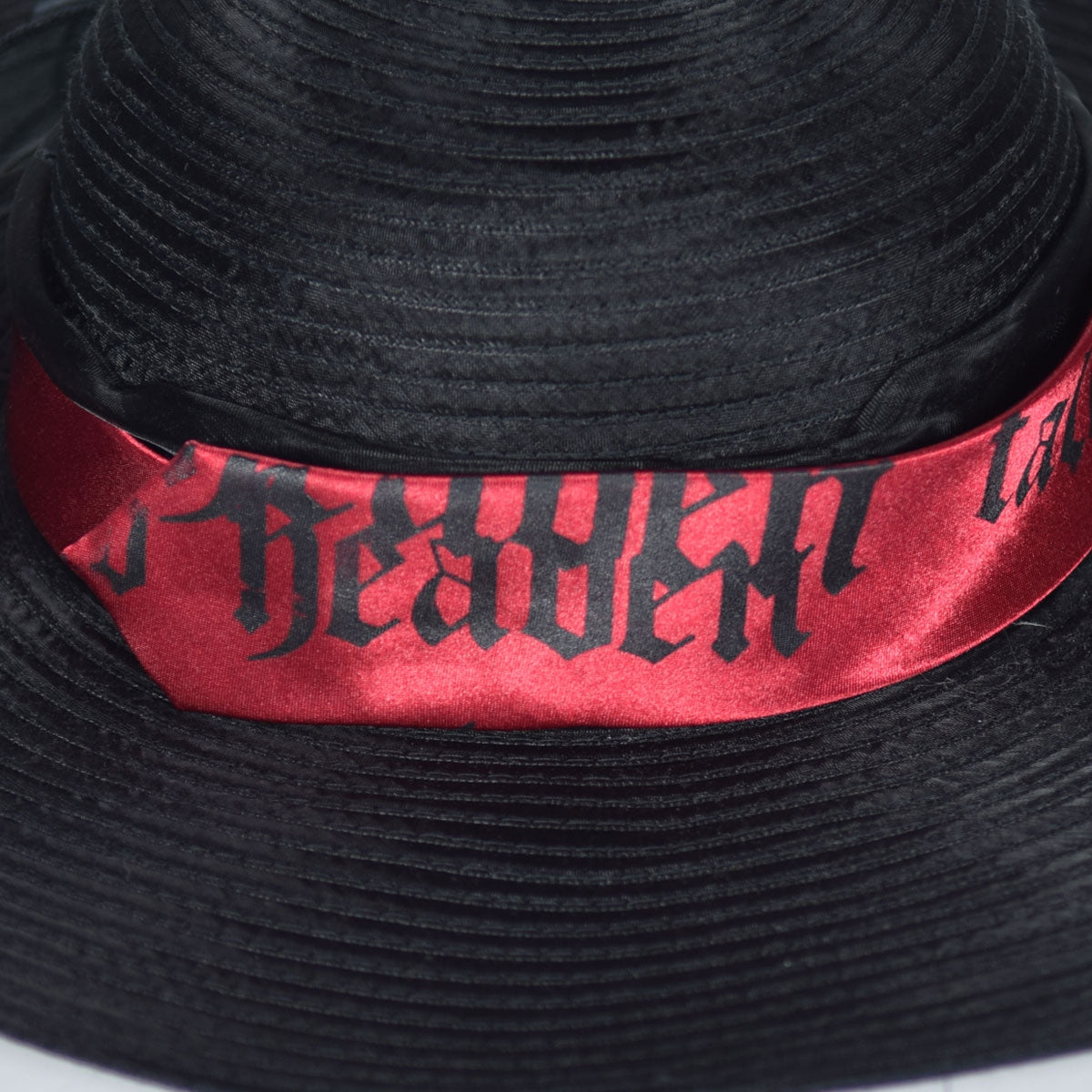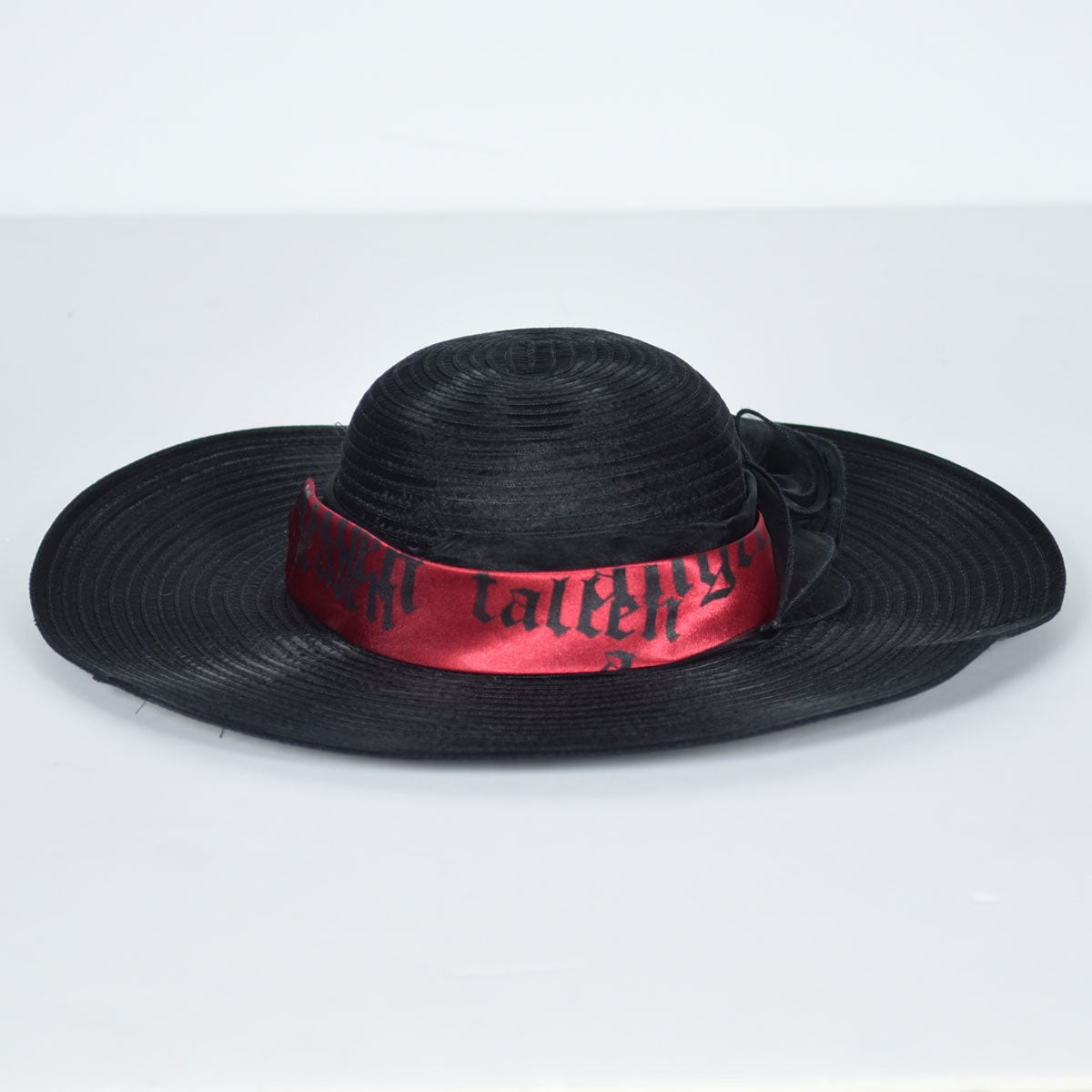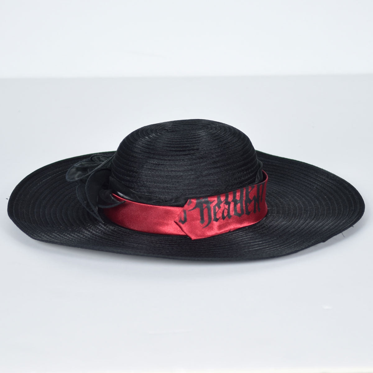真っ赤なリボンが目立つゴシック調のツバ広ハット。