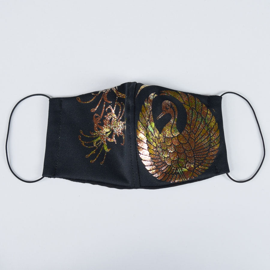 左の頬に日本の象徴的な”鶴紋”、右頬には日本の国花”菊”。