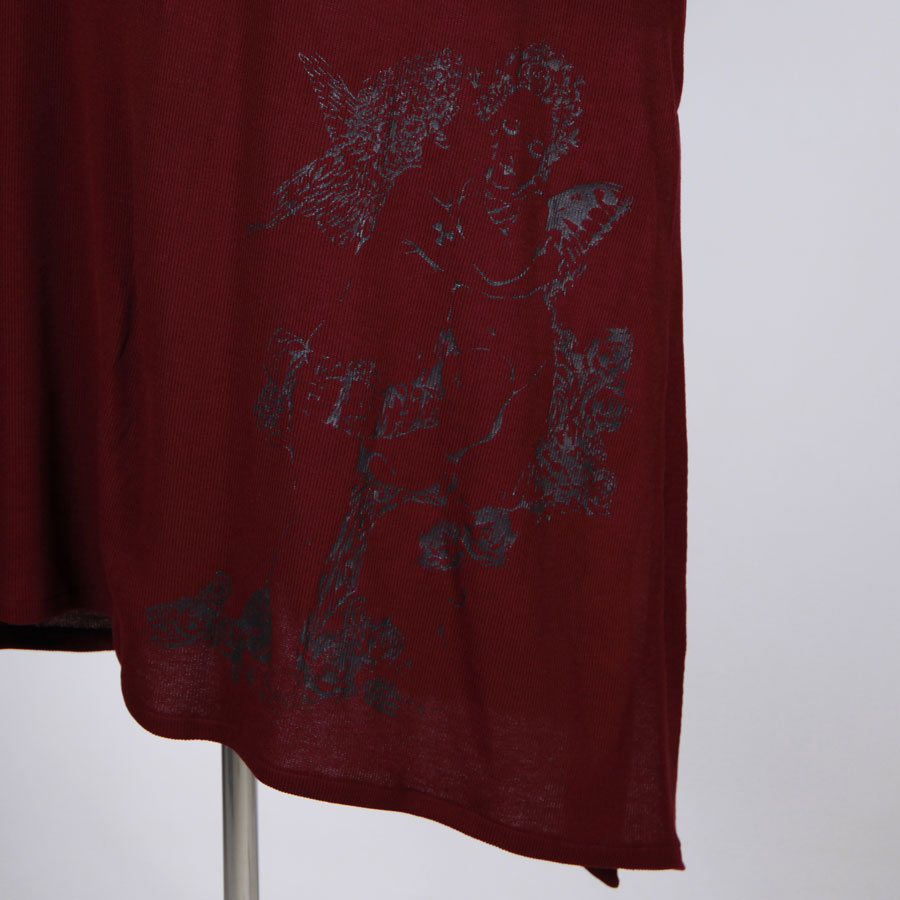 フロント裾にはさりげなく天使のプリントを配し、神秘的でロマンティックなアクセントに。