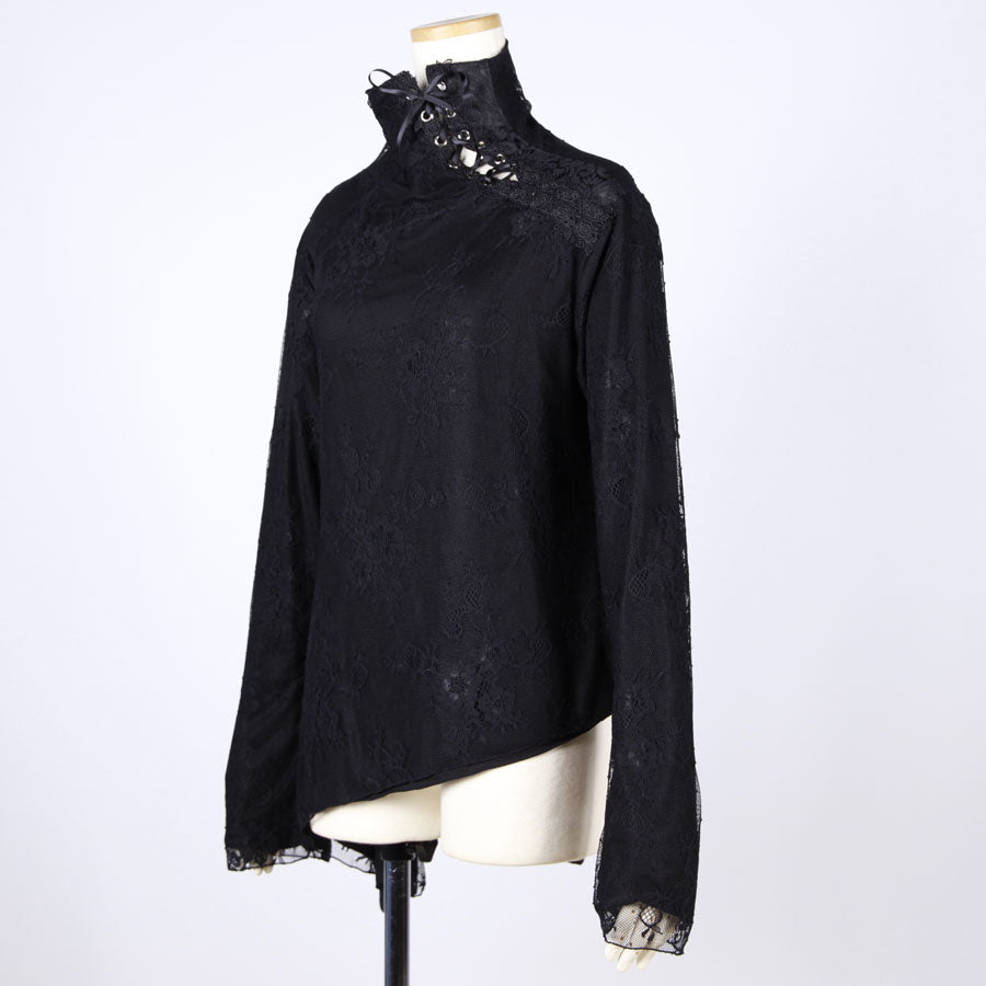 Asymmetrical Lace Overlay High-Neck Top