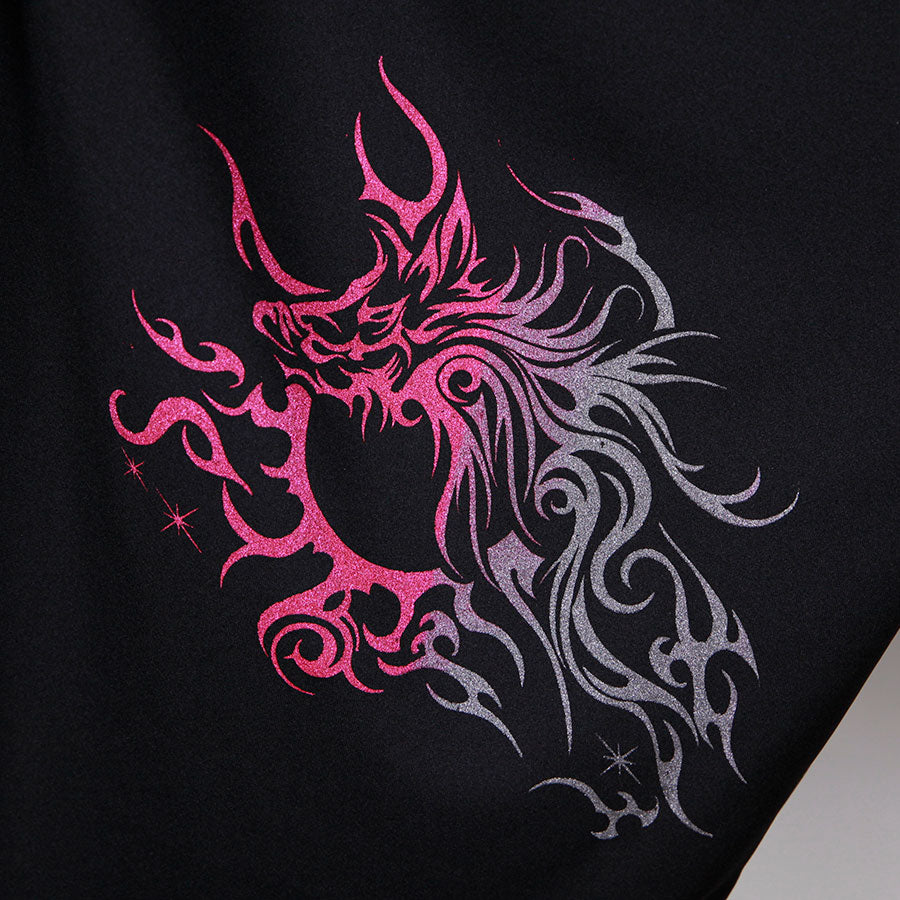■ グラフィックモチーフ:後ろ部分にメタルレッドとメタルブラックインクのグラデーションプリントが、動きに合わせて現れる神秘的な効果。