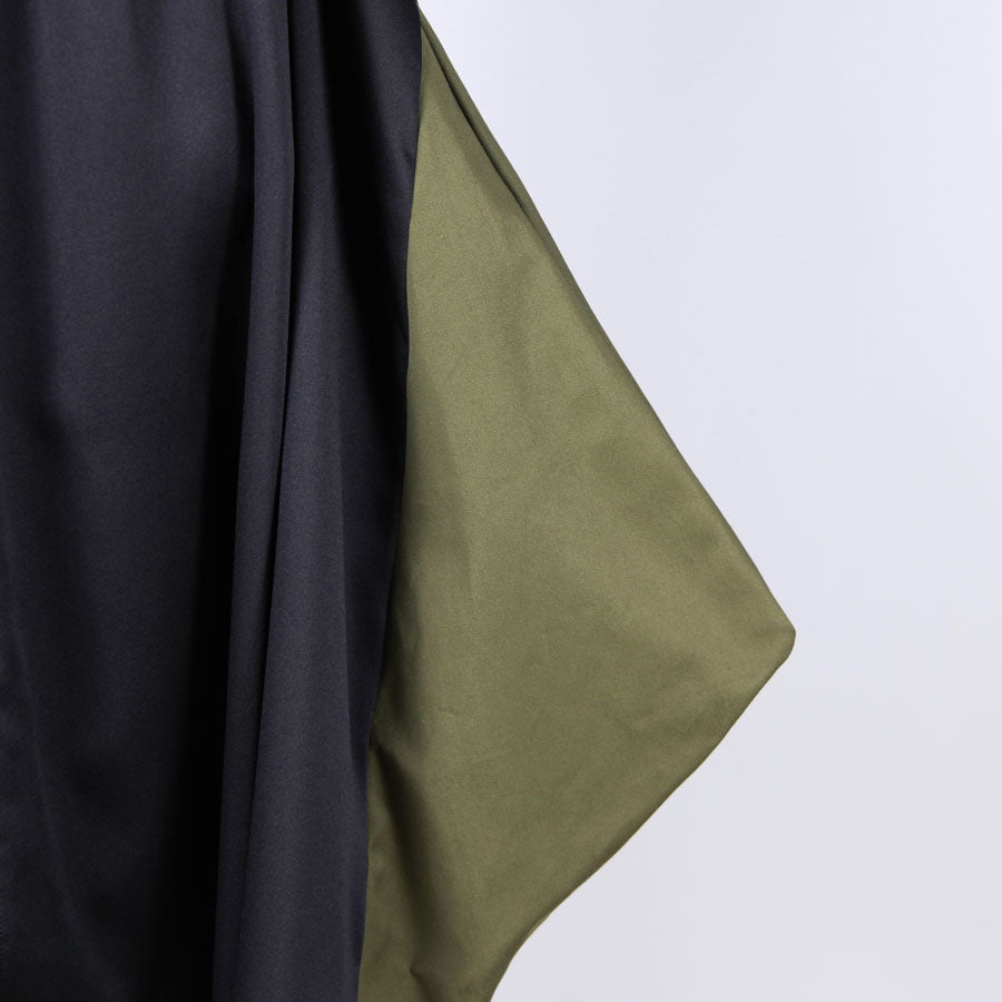 ジャケットと調和するダークな生地を切り替えたデザイン。