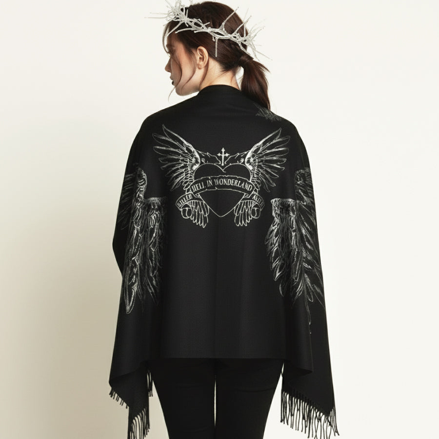 当像披肩一样戴在肩膀上时,看来她的背上有天使的翅膀。