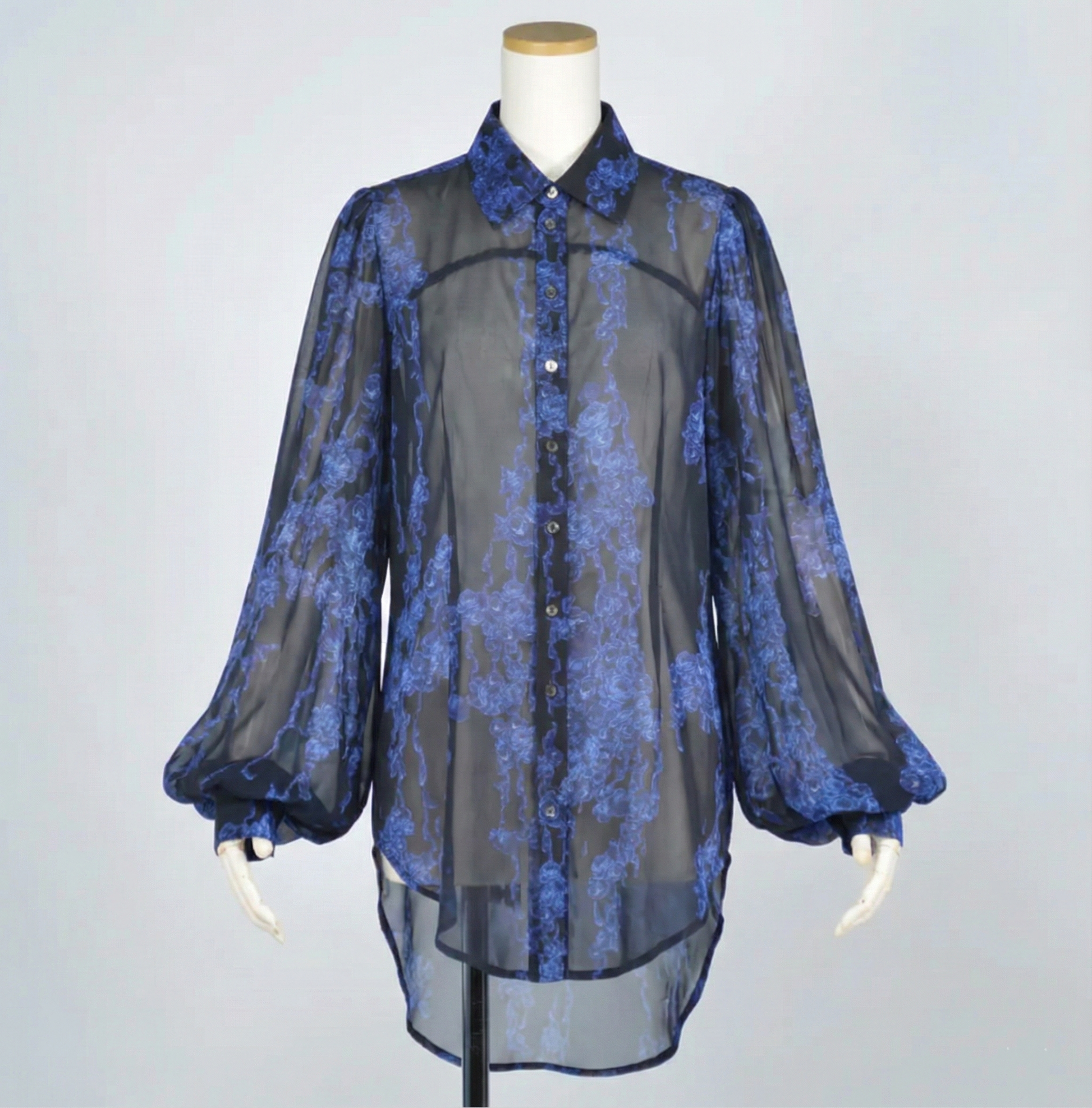 一件象征着H.Naoto的受欢迎的“血玫瑰”图案的上衣。